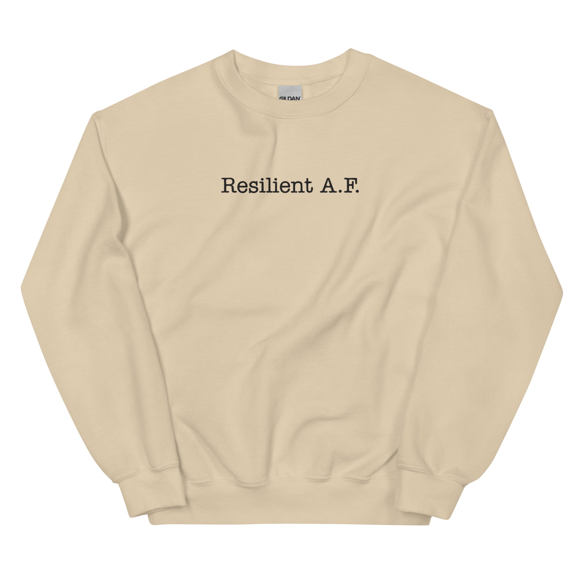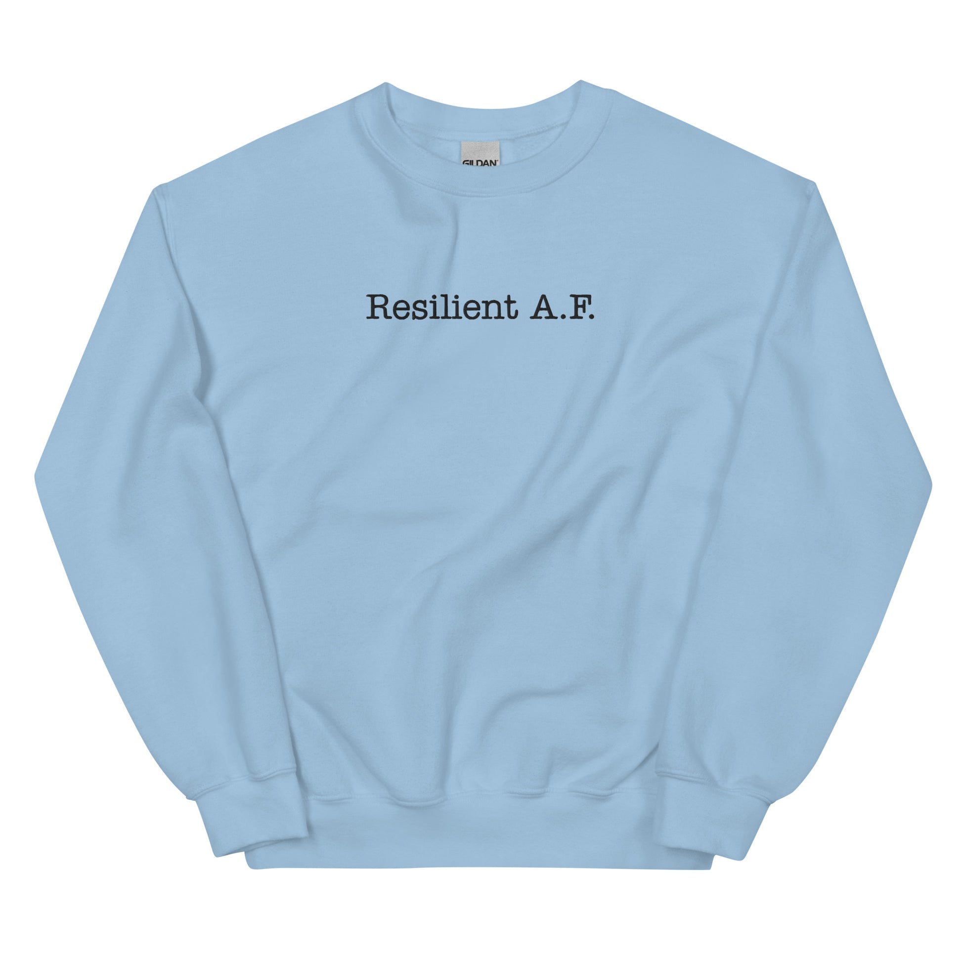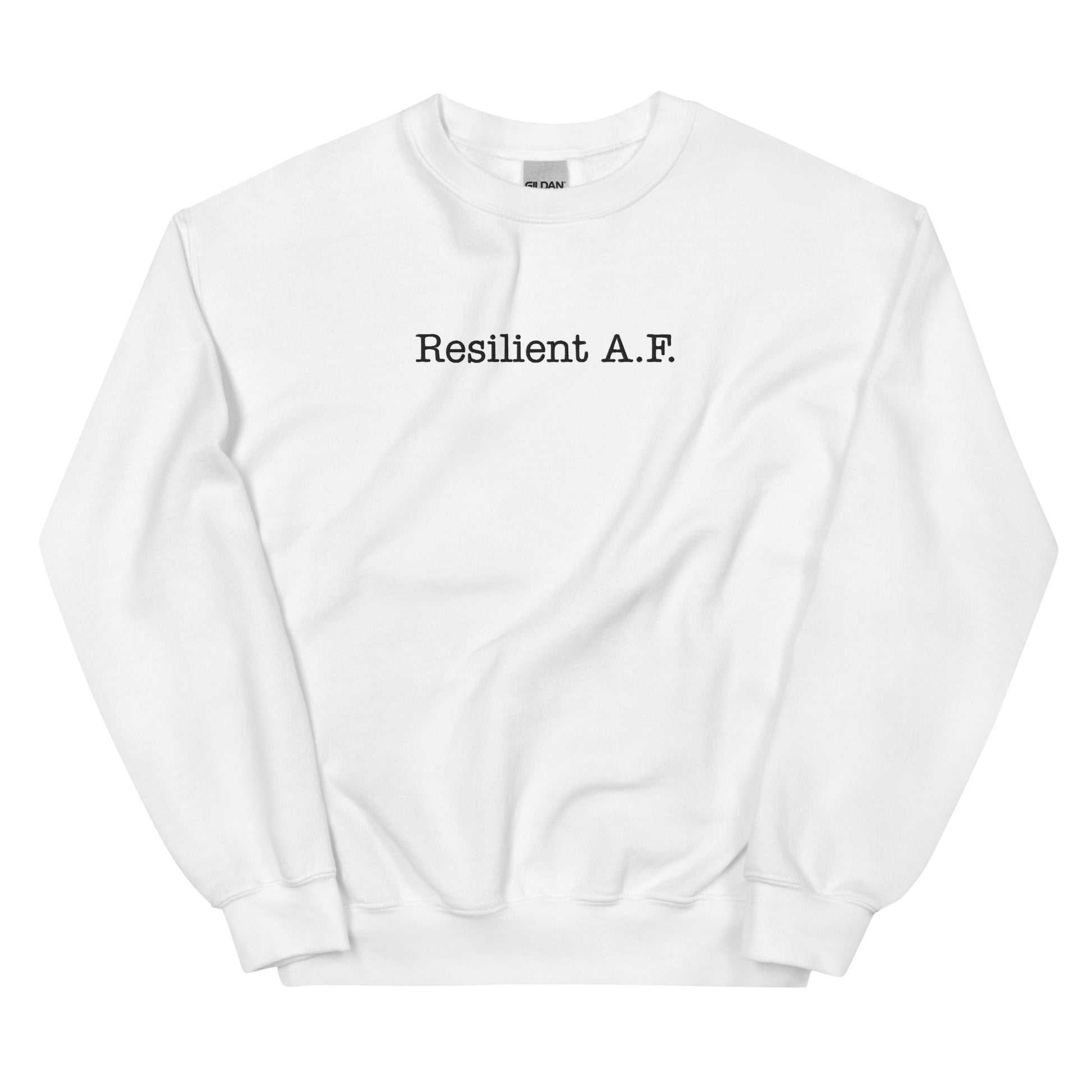 You are Resilient A.F. This is one way to express your resilience and honour The GRP's anthology series "Resilient A.F.: Stories of Resilience." A sturdy and warm sweatshirt bound to keep you warm in the colder months. A pre-shrunk, classic fit sweater that’s made with air-jet spun yarn for a soft feel.